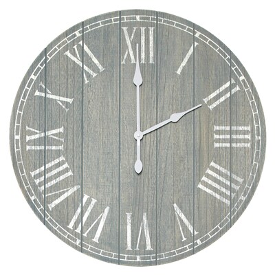 This sophisticated wall clock features a vintage finish with classic Roman numerals for a rustic antique look. Create an instant classic in your home decor with this 23" wall clock. It's the perfect addition for the kitchen, living room, bedroom or foyer!