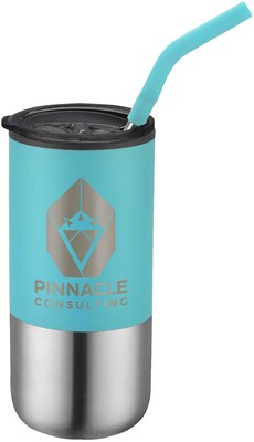 Stainless steel exterior & straw, Polypropylene plastic inner liner, acrylic lid, silicone tip on straw