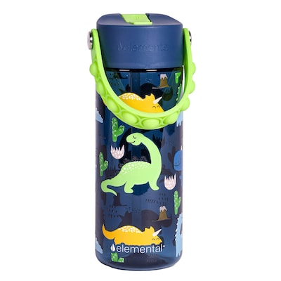 Elemental Splash Pop Plastic Water Bottle, 18 oz., Dinosaur Navy (EMLETR18DNN12P)