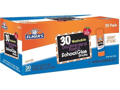 Build craft and school projects by securely attaching parts and components with this 30-piece pack of 0.77-ounce Elmer's School disappearing purple glue stick.