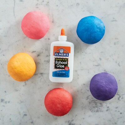 Attach items to paper, wood, cloth, pottery, and more with the non-toxic adhesive of Elmer's Washable School Glue.