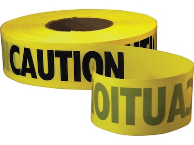 Make others aware of off-limits areas with this Empire Level yellow safety barricade tape. The big continuous caution labeling on this 3-inch-wide safety tape makes it clear that no one should pass, and the 1,000-foot role means there's plenty of tape to mark large areas. This Empire Level yellow safety barricade tape is made of 2-mil plastic that keeps stays flexible in cold weather.