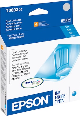 Enjoy quality photos and prints with this Epson 60 replacement cyan ink bottle.
