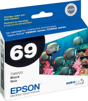 Get fade-resistant prints for important documents, letters and forms with this Epson 69 black ink cartridge.
