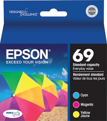 Get fade-resistant prints for important documents, letters and forms with this 3-pack of Epson 69 color ink cartridges.