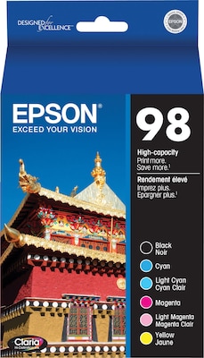 Epson 98 Black/Cyan/Light Cyan/Magenta/Light Magenta/Yellow High Yield Ink Cartridge, 6/Pack