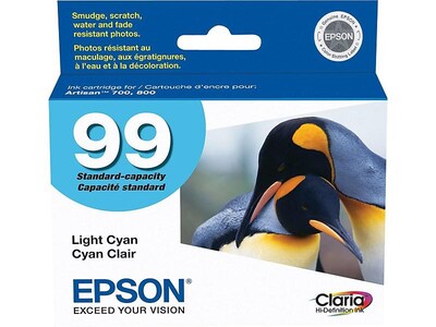 Protect prints from smearing and streaks with this light cyan ink cartridge. The standard page yield is ideal for daily printing, while the light cyan ink ensures text and images stand out. This Epson 99 ink cartridge is compatible with select Epson all-in-one machines and is simple to install, so you can get printing tasks going right away.