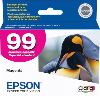 Get smudge-resistant prints every time with this Epson 99 magenta ink cartridge.