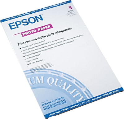 Epson Glossy Photo Paper, 11" x 17", 20 Sheets/Pack (S041156)