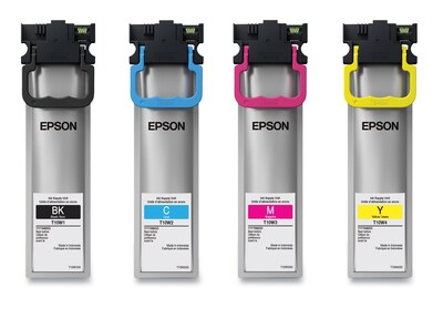 - Bundle includes Epson T10W100 black, T10W200 cyan, T10W300 magenta, and T10W400 yellow ink packs