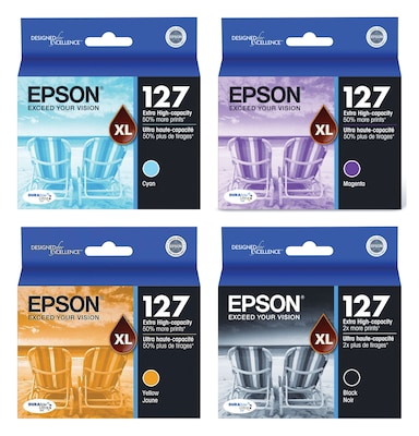 Epson T127XL Black/Cyan/Magenta/Yellow Extra High Yield Ink, 4/Pack