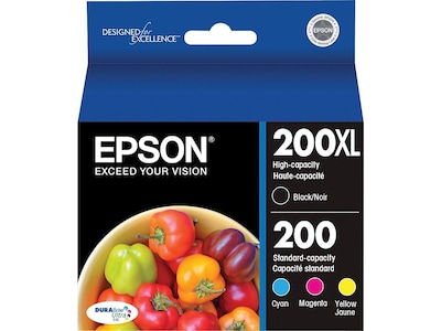 Keep your printer ready for anything with this Epson ink cartridge combo pack. The Claria premium black ink, C/M/Y inks ensure sharp, detailed print quality and striking results on white or color paper with every printout. Compatible with select Epson Expression Premium printers, these Epson 200XL/200 ink cartridges offer fast, effortless installation.