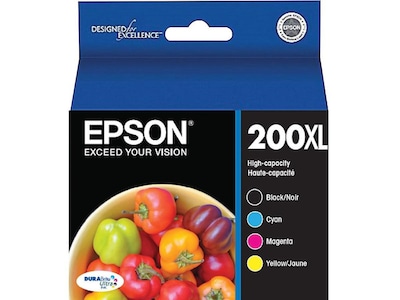 Enjoy high-quality prints with this multipack of Epson T200XL high-yield black and color cyan, magenta and yellow ink cartridges.