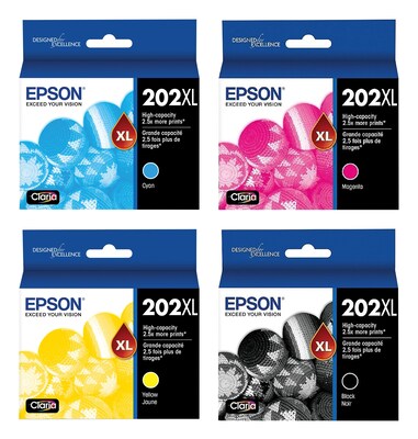 Epson T202XL Black/Cyan/Magenta/Yellow High Yield Ink Cartridge, 4/Pack