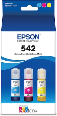 - Epson T542 Cyan/Magenta/Yellow Ultra High Yield Ink Bottle, 3/Pack (T542520-S)