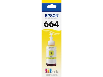 Enjoy quality photos and prints with this Epson EcoTank 664 yellow ink bottle.