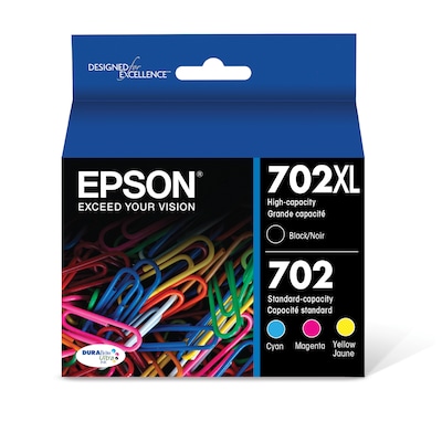 Ensure you're always ready to print documents with this multipack of Epson T702 DURABrite Ultra high-capacity black and standard-?capacity C/M/Y ink cartridges.