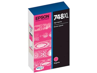 Create prints with vivid text and images with this Epson T748XL DURABrite Pro high-capacity magenta ink cartridge.