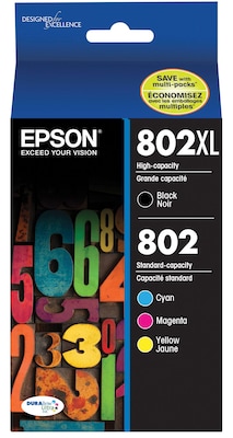 Ensure you're always ready to print documents and photos with this multipack of Epson T802XL DURABrite Ultra high-capacity black and standard-capacity cyan, magenta and yellow ink cartridges.
