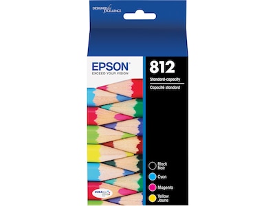 Ensure you're always ready to print documents with this 4-pack of Epson T812 DURABrite Ultra high capacity black and standard-capacity C/M/Y ink cartridges.