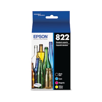 Epson T822 Black/Cyan/Magenta/Yellow Standard Yield Ink Cartridge, 4/Pack (T822120XL-BCS)