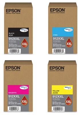 - Bundle includes Epson T912XXL120 black, T912XXL220 cyan, T912XXL320 magenta, and T912XXL420 yellow ink cartridges