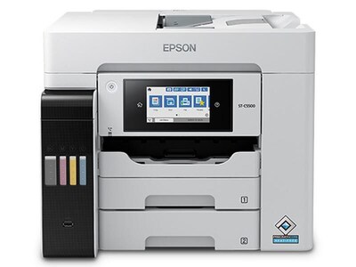 Introducing Epson's innovative WorkForce Pro ST-C5500 Supertank color MFP: welcome to the next era of office printing. Designed for enhanced productivity, this MFP includes up to 2 years of ink in the box, enough to print up to 12000 pages in black and 8800 in color. With print speeds of 25 ISO ppm (black/color) and a recommended monthly page volume of 3300 pages, Epson engineered this MFP to work as hard as you do. Powered by Epson's advanced PrecisionCore heat-free technology, the ST-C5500 provides an incredibly low power consumption. Plus, you'll save up to 80% with replacement ink bottles, which is about two cents per color ISO page compared to 14 cents with color laser toner cartridges.