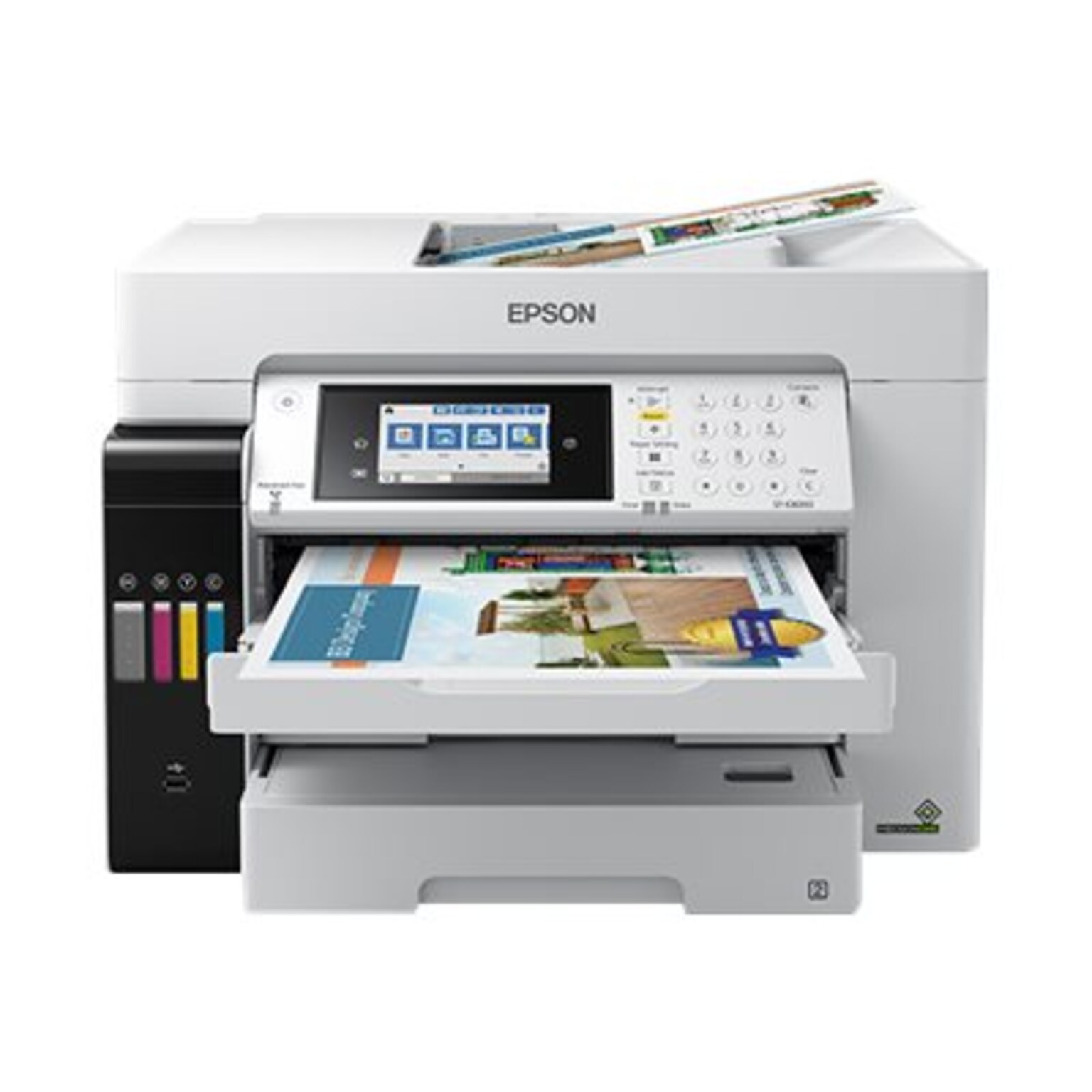 The WorkForce ST-C8000 color MFP saves on printing costs. PrecisionCore technology delivers a fast first page out and high-volume, print-shop quality output. Plus, there's zero cartridge waste and lower power consumption.