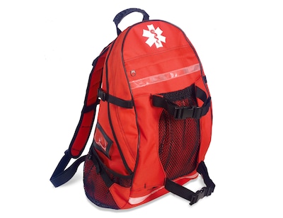 Ergodyne® Arsenal® 5243 Orange back pack trauma bag contains 3" padded shoulder straps with reflective striping for extra comfort and is made of 600D polyester with PVC backing that resists water.