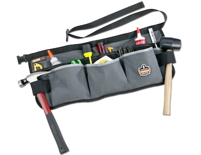Ergodyne® Arsenal® 5706 Gray waist apron includes 8 pockets for pens, pencils, small tools and 5 pockets for larger tools, cell phone. Apron with dual hammer loops is perfect for using in carpentry, finishing and trades applications.