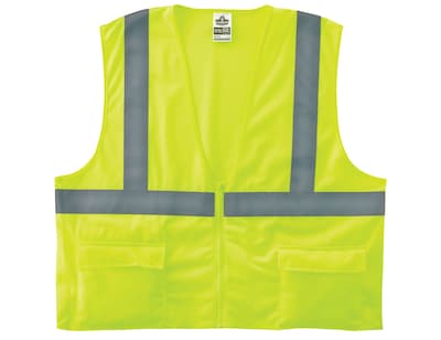Ergodyne® GloWear® 8225Z Large/XL lime class 2 Hi-vis standard vest with 2" reflective tape is made of 3.6 oz polyester solid for longer life. Vest with zipper closure includes an inside and 2 outside pockets for more comfort.