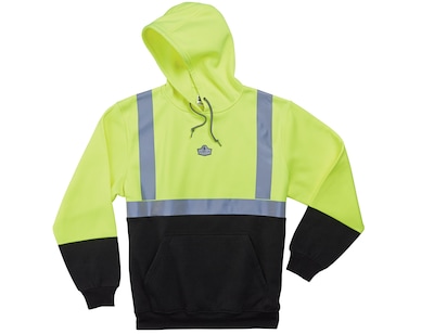 Ergodyne® GloWear® 8293 2XL lime class 2 hooded Hi-vis sweatshirt with black accents on front and sleeve is made of 8 oz polyester polar fleece for longer life. Shirt has 2" heat transfer reflective tape with drawstring hood for more comfort.