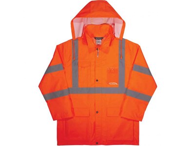 Ergodyne GloWear 8366 Lightweight High-Visibility Rain Jacket, ANSI Class R3, Orange, X-Large (24365)