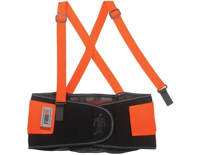 Ergodyne? ProFlex? 100 Medium Orange economy high visibility back support has durable spandex body that offers consistent stretch with the zig-zag stitching. Back support is adjustable/detachable and is ideal for construction/warehousing.