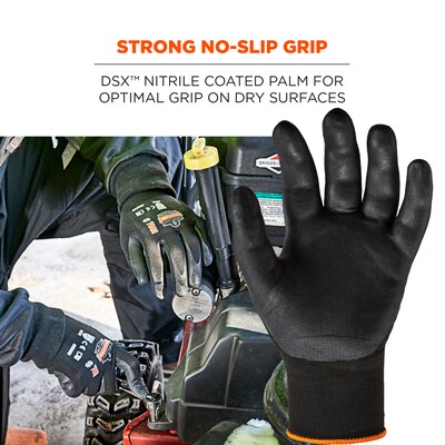 - STRONG NO-SLIP GRIP – Durable DSX nitrile coated palms for optimal grip with dry surfaces and materials