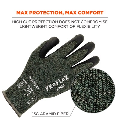 Ergodyne ProFlex 7070 Nitrile Coated Cut-Resistant Gloves, ANSI A7, Heat Resistant, Green, Medium, 12 Pair (18033)
