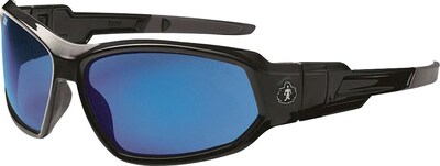 Ergodyne Skullerz® Loki Safety Glasses, Black/Blue Mirror, Anti-Scratch/Fog
