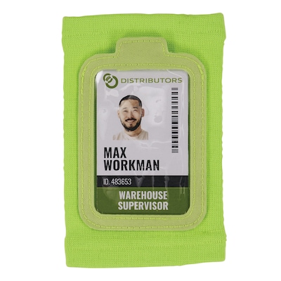 Squids 3388 Wrist ID/Badge Holder is designed for easy access and prevention of lost IDs and badges. A soft and breathable circular knit polyester material stretches to fit a range of wrist sizes, while a small pocket with zipper closure keeps small items secure. The clear window is made with durable vinyl for protection and long-lasting use. This arm band holder fits most ID badges or access cards measuring 3.75in x 2.75in // 9.5cm x 6cm. Available in 4 colors (black, orange, lime and blue) to match various uniforms. It is ideal for those who work in warehouses, distribution centers, material inventory on construction and steel sites, airline baggage scanning and grocery/personal shopping.