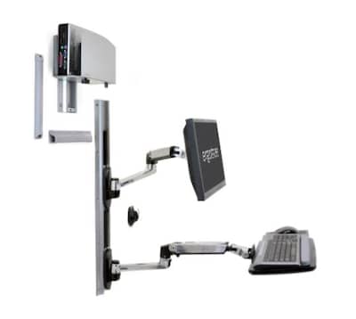 Ergotron 45-247-026 comes with medium silver CPU holder. It is made with durable polished aluminum construction. It is a complete solution that accommodates an LCD, keyboard and CPU while providing vertical and side-to-side motion. It is perfect for space-constrained areas: simply fold the keyboard and LCD tight against the wall when not in use.