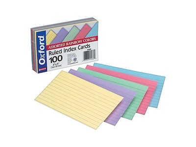 Organize notes with these Esselte Oxford 3 x 5-inch ruled assorted color index cards.
