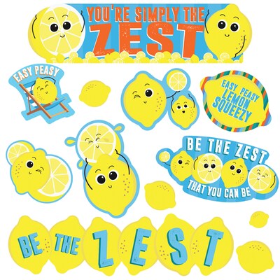 Teach and encourage positive behaviors and responsibility in your classroom with a 17 piece Eureka Mini Bulletin Board Set. Set includes 5 Motivational Headers, 8 Lemon Characters and 4 Motivational Cut Outs. Packaged as (8) 6" x 21" panels.