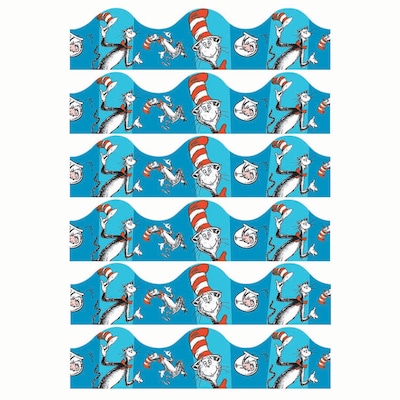 Use Deco Trim® as a finishing touch on the edges of your bulletin boards, windows, doorways, chalkboards and dry erase boards. You can't go wrong with this classic Dr. Seuss design featuring his famous Cat in the Hat™ on this blue bulletin board border. The vibrant colors and designs will add creativity to all of your displays. Each package contains 12 strips of 2.25"wide x 37" long trim for a total of 37 feet. Sold as 6 packs for 222 feet (72 strips) total.