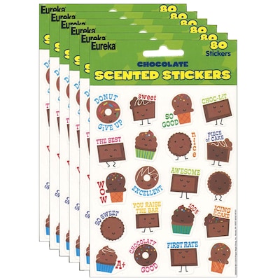 Eureka Chocolate Scented Stickers, 80 Per Pack, 6 Packs (EU-650944-6)
