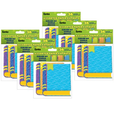 Eureka Color My World Books Assorted Paper Cut Outs, 36 Per Pack, 6 Packs (EU-841024-6)