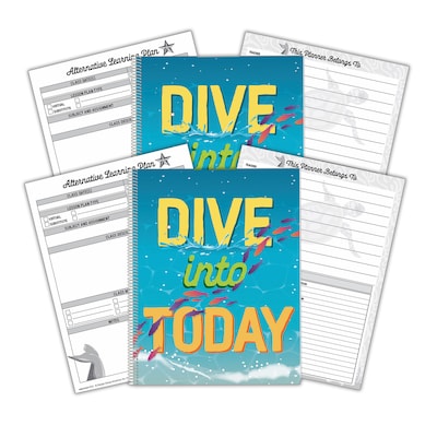 Eureka Lesson Plan Books record attendance, track assignments, organize seating arrangements and are great to use for the entire school year. Each spiral bound book contains 167 pages, substitute teacher information, an alternative learning plan page, 12 month block calendars, student roster, weekly planning sheets, and more! Book measures 8.5" x 11". Make a splash! Make your classroom turtley awesome with the Seas the Day collection. Cool ocean vibes, motivational phrases, marine life imagery, and vibrant colors make this theme easy to age up or down. Sold as a pack of 2 Lesson Plan Books.