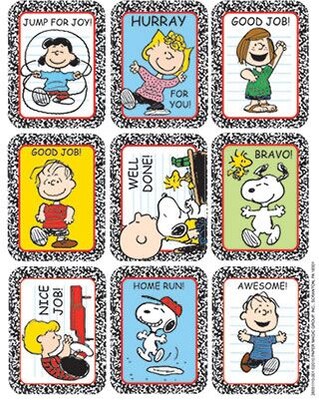 Peanuts characters stickers reward good work and excellent behavior or boost a student's self-esteem with colorful giant stickers.