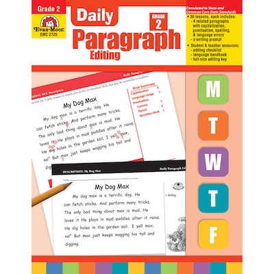 Evan-Moor® "Daily Paragraph Editing" Book for grades 2 has writing prompt to generate an authentic activity for effective writing. Paperback book of 176 pages includes scopes, charts, annotated pages and allows to improve language usage skills.