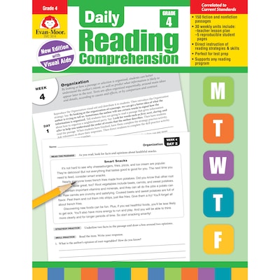 Help your fourth grade students learn how to understand, respond to, and enjoy what they read! Daily Reading Comprehension presents students with direct instruction and practice of the comprehension strategies and skills they need to become strong and successful readers. 150 original fiction and nonfiction passages with comprehension items help you engage students in reading, thinking about, and responding to a variety of texts. Reproducible pages, included in the teacher's edition, provide visual tools for students to help them apply reading skills to the passages they read. And because activities are presented in an exam format, students practice important test-taking skills while they strengthen comprehension. What's new in the revised edition"• Visual aid comprehension pages• Constructed response questions. Standards-aligned questions replace multiple choice questions.30 weeks of instruction cover the following reading skills and strategies:Skills:• Theme• Character and Setting• Main Idea and Details• Fact and Opinion• Visual Information• Author's Purpose• Make Predictions• Draw Conclusions• Cause and Effect• Compare and ContrastStrategies:• Monitor Comprehension• Make Connections• Visualization• Organization• Determine Important Information• Ask QuestionsYou'll love Daily Reading Comprehension because it...• provides students with direct instruction and practice of reading skills and strategies. • supports struggling and reluctant readers. • integrates easily into any language program and any classroom. • works great for test-prep. • is correlated to current standards. Engage your students in reading, thinking about, and responding to a variety of passages and texts with Daily Reading Comprehension!