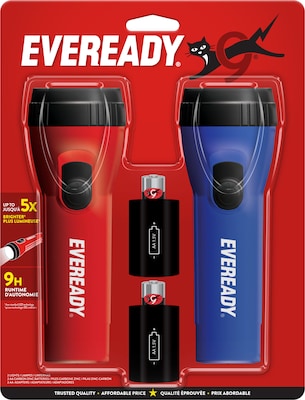 Eveready 6.5" LED Handheld Flashlights, Assorted Colors, 2/Pack (EVLC1L1D12)