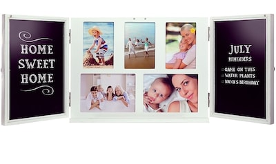 Whether you need to write down your latest announcement, keep track of notes, or remind your children about their tasks, this board will convey your message clearly, no matter how times you use it. Perfectly suited for home, office, and commercial use. Our rustic magnetic chalkboard and photo frame with hideaway doors is the only chalkboard you will ever need. Made out of a strong and stylish frame with a stain-free magnetic surface, it's made to last a lifetime. Use with traditional chalk or liquid chalk markers. The price holds three 4"x6" photos and two 5"x7" photos.